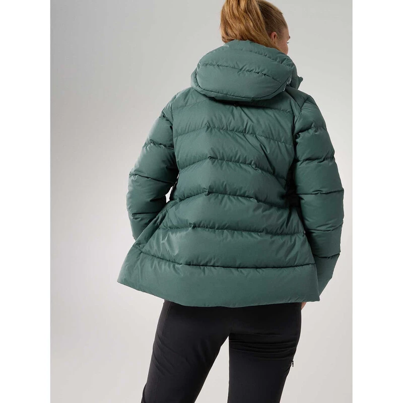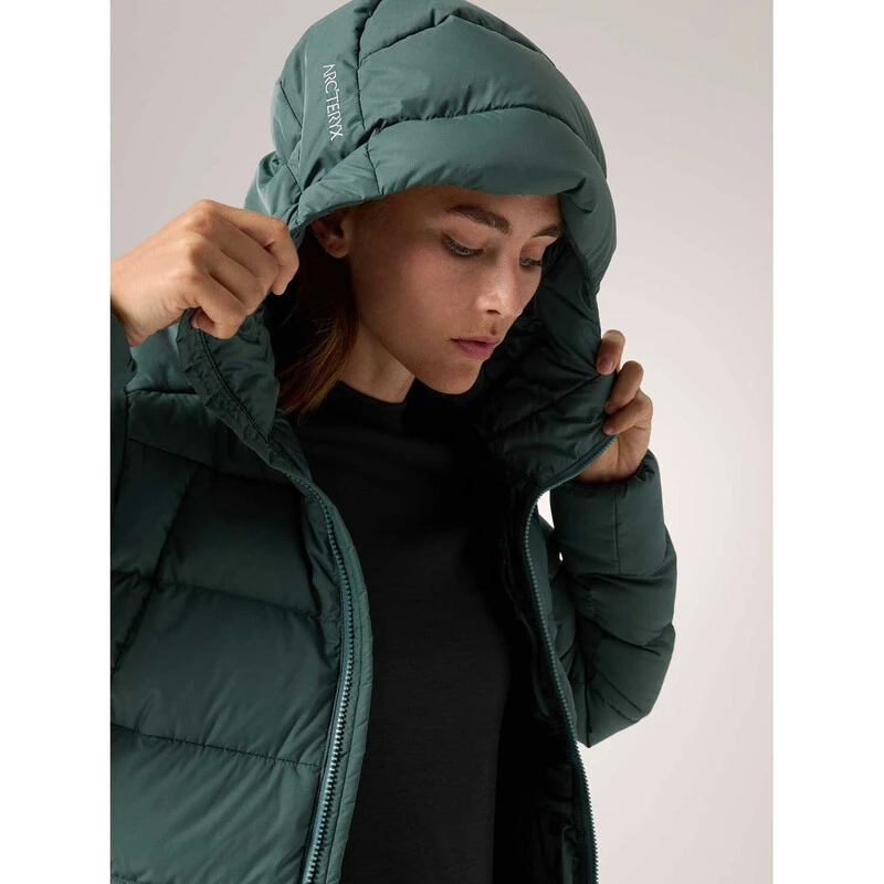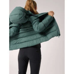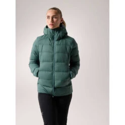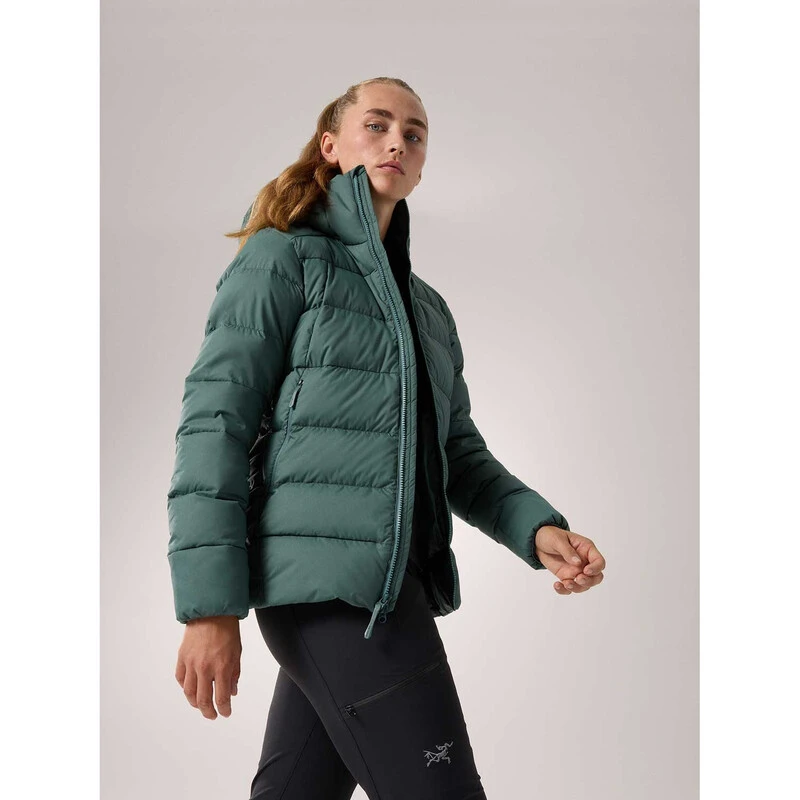 Warm, light and ready for cold weather climbing and hiking, the women’s Thorium hoody is packed with responsibly sourced goose down and bluesign approved Coreloft™ synthetic insulation for outstanding thermal performance. Down Composite Mapping™ strategically places synthetic insulation where you’re likely to work up a sweat and the light, durable Arato™ 30 nylon shell has a DWR treatment to shrug off showers. The insulated adjustable hood fits over your helmet while a two-way zip lets you stand your ground on freezing cold belays.