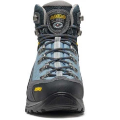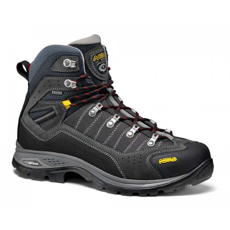 The outsole package is made of a two density Eva midsole: the first density is harder for giving support and stability while the second is softer which assures comfort and cushioning. The Asolo/Vibram outsole has a self cleaning design and it uses the MegaGrip compound which gives amazing grip, traction and performance on wet and dried terrains. To complete the model a toe rubber cap for additional front protection and the hardware lacing system for a fast and precise lace up.
