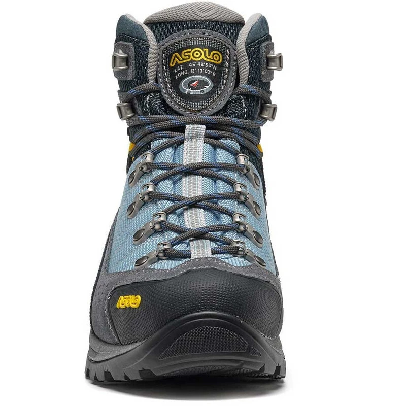 - Sole: Asolo/Vibram Duo Radiant with Megagrip compound (rubber-dual density eva)