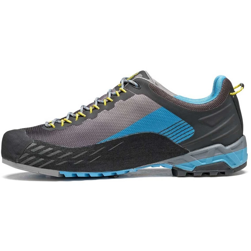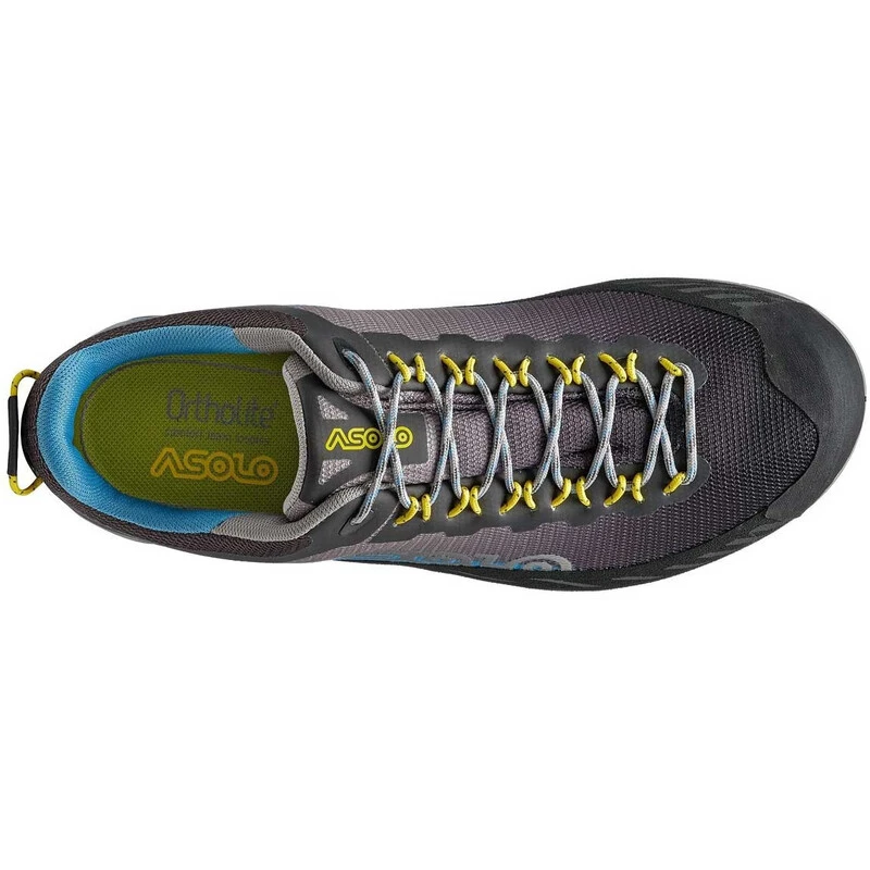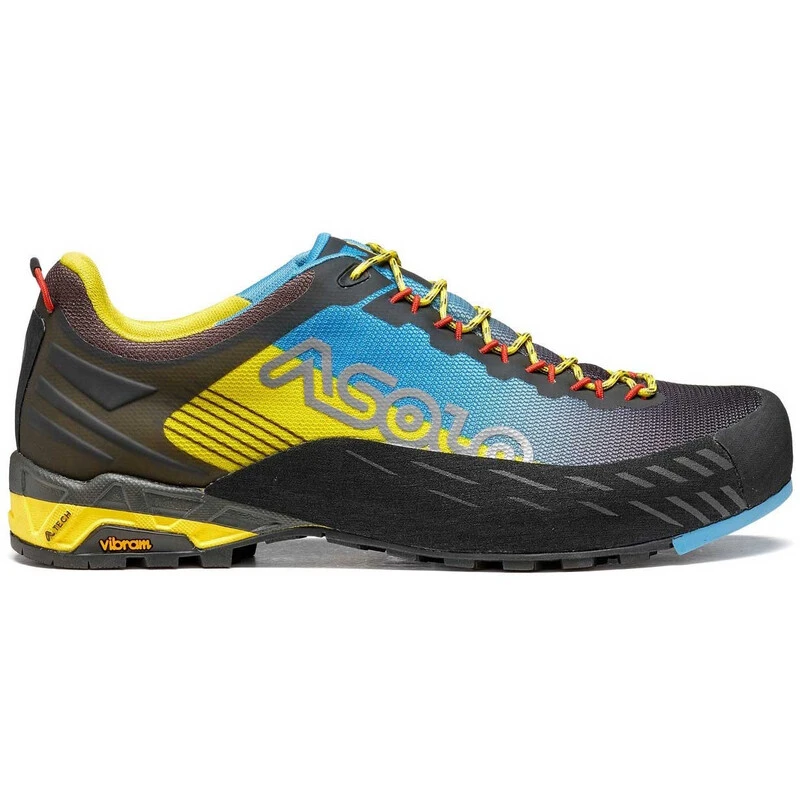 A very light and agile shoe with excellent support, designed for technical approaches and day hikes. The low cut men’s Eldo approach shoe uses a technical seamless polyester upper and a velveteen lining to guarantee the best breathability. The mono-density thermoformed Eva midsole provides the best support, stability and cushioning. The Asolo/Vibram AG outsole features a self-cleaning design and precision climbing area; it also uses the MegaGrip compound which offers excellent grip in dry and wet terrain. The PU rand supplies wrap-around protection, while the cordon lacing system and the thermo-shaped tongue are designed for a fast and precise fit.