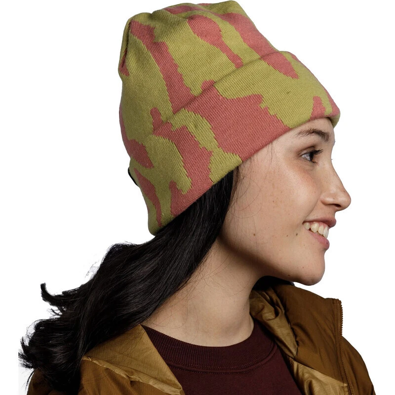 The Buff Kyre Knitted Beanie’s whimsical designs and recycled materials combine to create a classic fashion piece with a conscience.