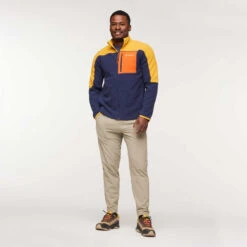 The Abrazo Full-Zip Fleece men’s jacket puts a quirky Cotopaxi spin on a retro camp-fire fleece, with colourful 100% recycled fleece and practical dropped shoulders. This soft, cosy, and stylish fleece features front hand pockets and a stretchy, zipped chest pocket to stash your little essentials.