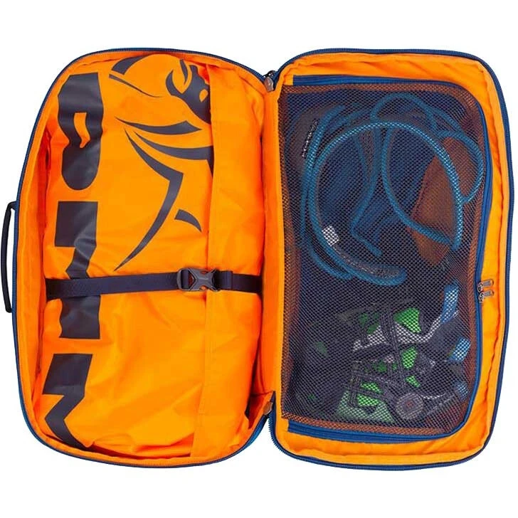 The DMM Flight is a highly featured sport climbing crag sack, combining rope bag and rucksack. It is sized to cope with everything you could possibly need for a day at the crag, and that includes a Euro style 80m rope. It also matches the maximum ‘carry on’ hand luggage size for most airlines and has stash-able features to reduce snagging during transit. The internal racking, tarp and pockets allow you to keep all your kit neatly organised and easily accessed.