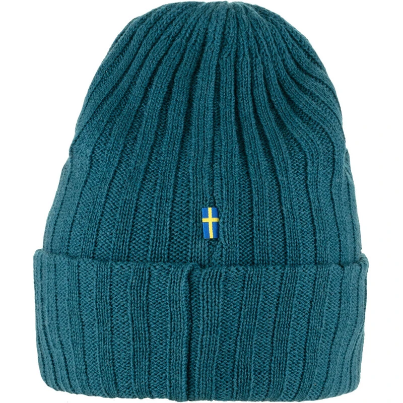 A soft, cosy beanie in a double-knitted wool that makes it both warm and durable. Double-fold at the bottom and ribbed for comfortable fit. Arctic fox on the forehead.