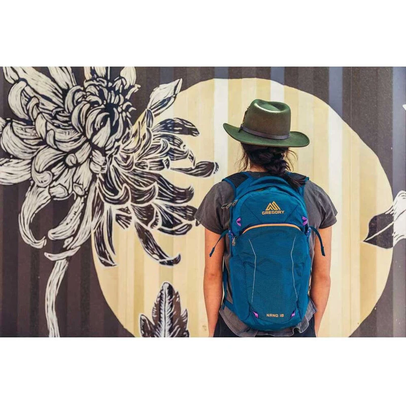 The Gregory Nano 18 is a great pack for fast and light hikers, multi-pitch climbing or via ferrata, or cross country mountain biking. The compact, minimal, yet functional design stores food, water, and lightweight layers while you race to the top, then hugs your back like a frightened monkey as you fly back down the trail.