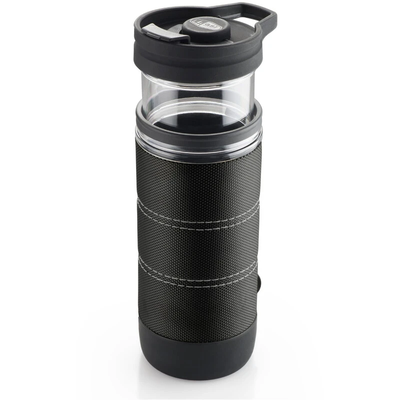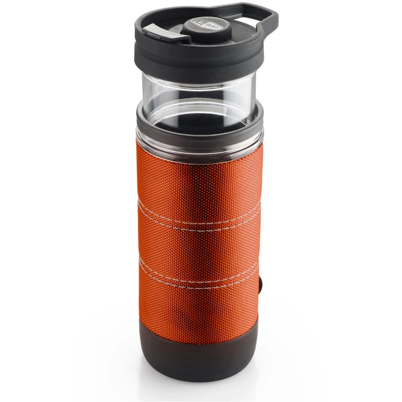 GSI’s Commuter Javapress employs an incredibly clever design to brew your coffee. Instead of the central rod pressing the plunger down onto your grounds, the Javapress has a sleeve that traps the brewed coffee grounds and adds an extra layer of insulation.Â