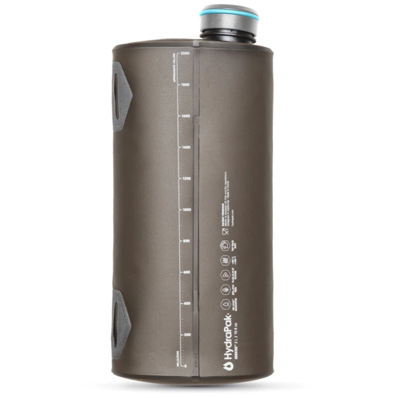 The Hydrapak Seeker is a lightweight yet sturdy water storage system for camping or backpacking. You can freeze it or fill it with hot water (60°C max) and when you’re done it’ll scrunch down to the size of your fist. The rigid top with 42mm screw closure makes it easy to fill, and is compatible with the filter on a Katadyn BeFree. Welded construction in 100% PVC and BPA free TPU, with lash points for attaching to the outside of your pack.