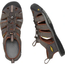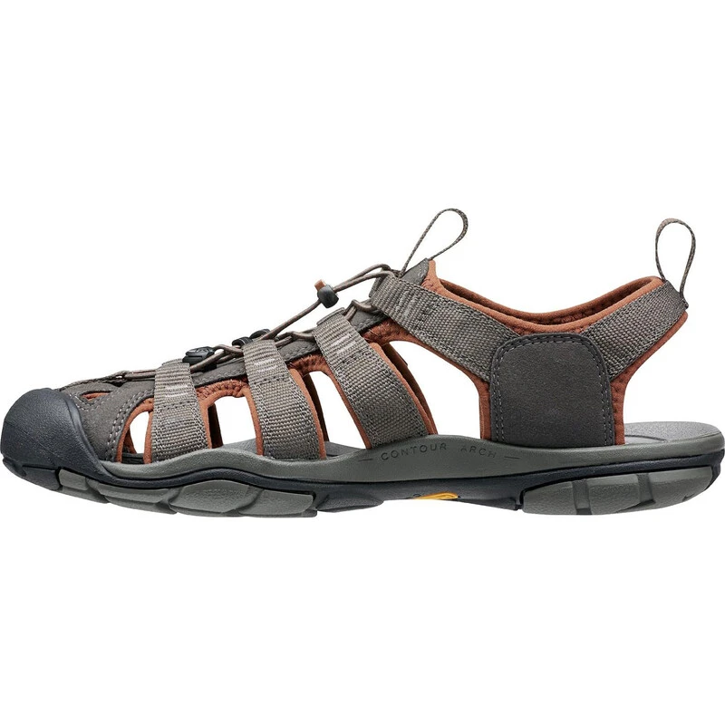 The essential KEEN fit, flexibility and protection, lightened up to make every step a natural connection. The Clearwater features a webbing upper with traditional KEEN sandal style. The bungee lace allows for customised fit. Multi-directional flex grooves on the low-profile sole enhance the natural flexibility of the foot and improve ground contact while razor siping provides advanced traction on slick surfaces. The contoured arch cradles and supports the foot.