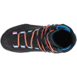 The La Sportiva Aequilibrium ST GTX is a lightweight, technical and crampon compatible boot for mixed terrain, via ferrata, trekking, glacier crossings and so on. It looks pretty striking, with a pronounced double-wedge “cuban heel” style sole that looks like it should stop you tobogganing off down the hill in wet or snowy conditions, and allows a smoother rolling action when you walk, reducing muscle fatigue.