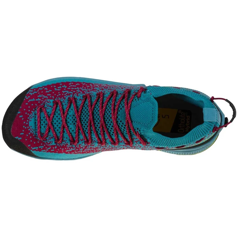 The lightest shoe in La Sportiva’s Traverse X approach series – the women’s TX2 Evo has the grip, protection and minimal volume you want for technical approaches and multi-pitch routes. The soles on your TX2 Evos are designed for quick and easy resoling by replacing the tread exclusively at authorised La Sportiva resolers. The upper is seamless and very comfortable, thanks to an integrated tongue that eliminates gaps and wraps the foot for maximum comfort and protection.