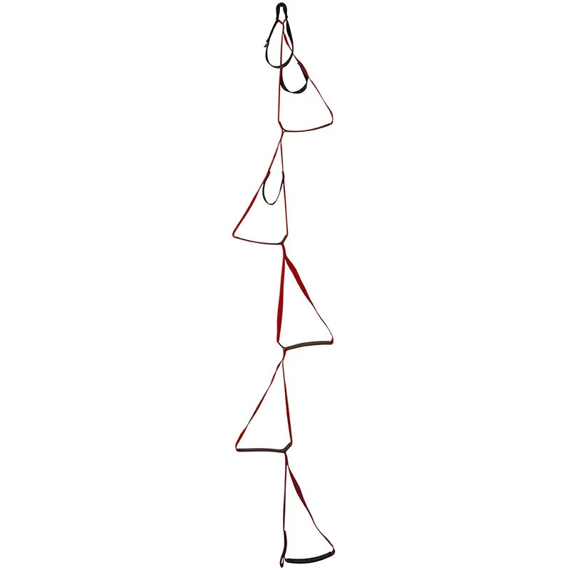 A 5 Step etrier from Metolius in classic triangle step construction, with wide steps stiffened with Biothane so they stay open and support your foot. This aider offers a reinforced clip-in point, a full-strength grab loop, sub-steps in the top two steps, and a dedicated clip-in point at the bottom for enchaining aiders without collapsing the bottom step.