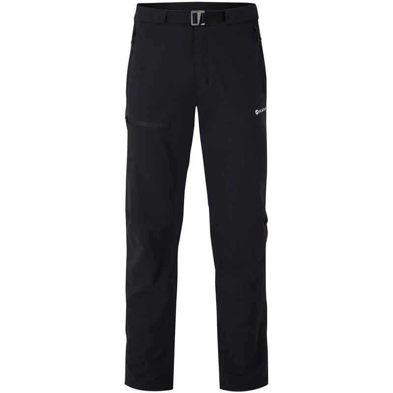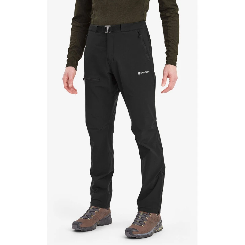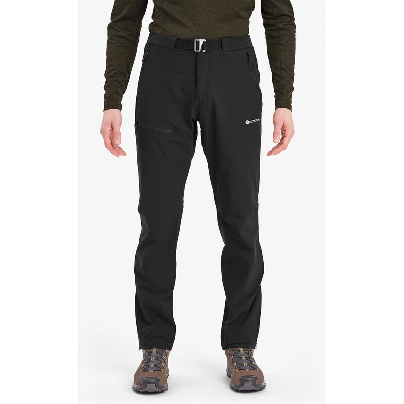 Durable softshell hiking trousers made for mountain walking, Montane men’s Tenacity Pants use a super stretchy fabric with articulated knees for unrestricted movement; with a zipped fly, a button fastening and an integrated belt that keeps them in place when you’re on the move. Two zipped hand pockets and a secure zipped rear pocket keep your essentials safe. They’re made with Granite stretch fabric for excellent abrasion and wind resistance, plus eco-friendly PFC free DWR. Designed with hiking, walking and back packing in mind they’re perfect for long days in the hills.
