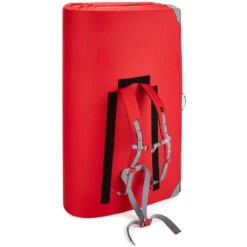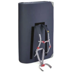 The Saturn Bouldering Pad is the biggest in the Moon Climbing solar system, so it must be highball time. A larger thicker version of the Warrior, the Saturn is a very clever and effective pad, with a taco style fold which gives the best landing surface around. It folds up with the landing surface on the outside, which gives two major advantages: firstly when open and in use the pad remains flat at all times, and secondly when closed and in carry mode the dirty side is inside keeping the dirt and damp off your back. A velcro flap covers the straps when in use so you don’t trip over them.