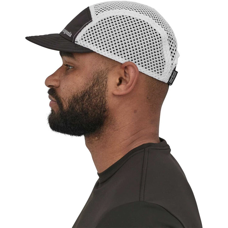 Inspired by Patagonia’s ultrarunning ambassadors, this lightweight, highly breathable short-brim cap folds down to fit in a pocket. Made from recycled fishing nets to help reduce ocean plastic pollution.