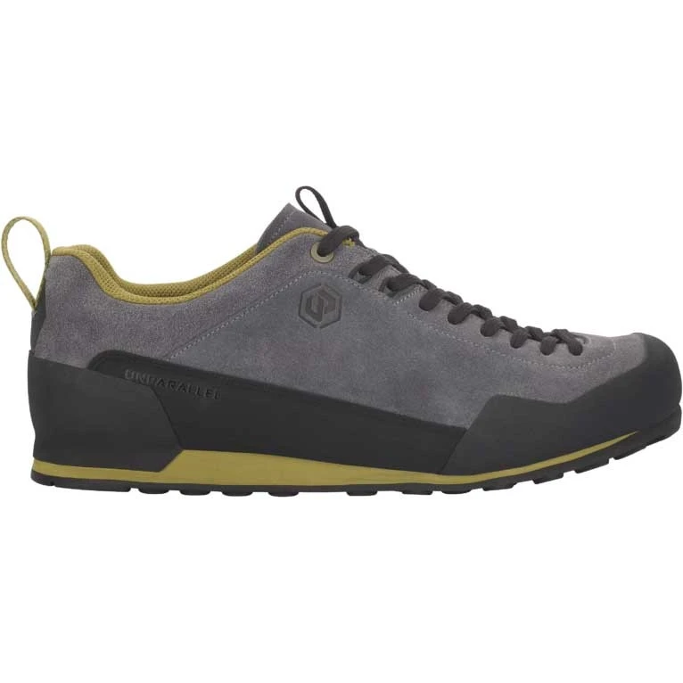 UnParallel’s new Rock Guide approach shoe features a durable toe rand for added protection and friction. The upper is made entirely of 2mm leather suede for comfort, while the outsole is designed with climbing in mind. The RH rubber compound and hexagon/dot tread sole work together to provide optimal friction and long-term durability on the rock. The Rock Guide features an internal rocker for a more efficient and smooth approach to your next project.
