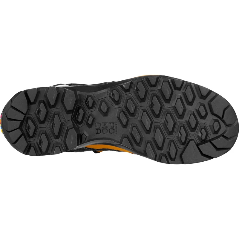 Salewa’s Edging Plate 2 technology uses targeted stiffness for edging stability and enhanced climbing performance – while balanced flex and rebound provide hiking comfort, and a heel stabilizer with crampon compatibility offers enhanced support on edging trails. 3F system technology increases support and stability on the heel area, while the Multi Fit Footbed Plus (MFF+) and 3D-lacing allow a customizable fit, for optimal comfort.