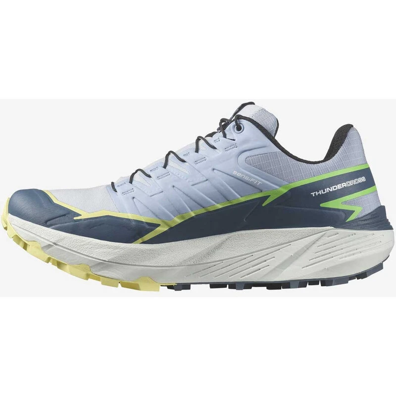 The Thundercross is a women’s trail running shoe built for a dynamic, ultra-plush cushioned ride, with exceptional grip and precise foothold. Equipped with aggressive 5mm lugs to tackle any terrain, no matter how tricky, technical, or just downright nasty. Developed in the French Alps, they’ve been tried and tested on everything from rolling terrain to rocky slopes or sticky single tracks. Salomon’s Sensifit™ construction offers precise, optimal foothold and the springy and comfortable midsole compound delivers punch and pop and smooths out your landings for a fluid ride.