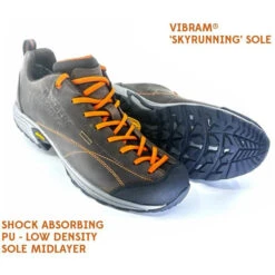 - Sole: Vibram® multi-terrain ‘SkyRunning’ sole with PU cushioned/shock absorbing midlayer