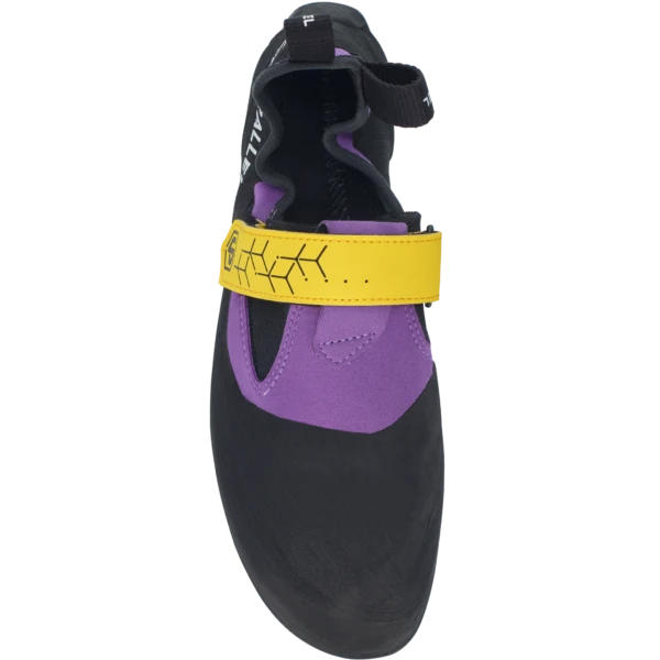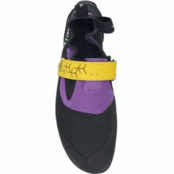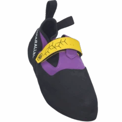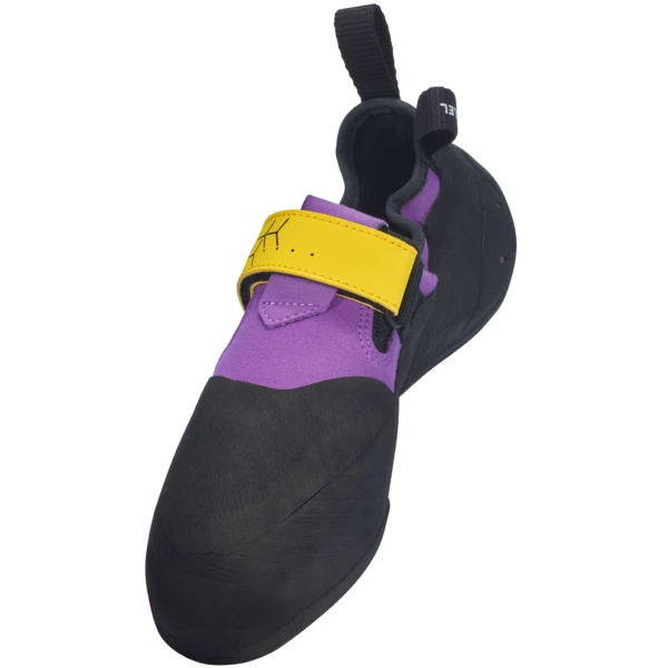 The UP-Rise Pro is a high-performance, slip-on moccasin rock shoe that pays homage to the original sticky rubber and seems built to cope with Peak grit jamming and crack climbing. A trad-style mocc, it’s a very stiff, flat shoe that’s great for edging, with an asymmetrical toe for precision footwork and a Velcro closure to ensure a snug fit. The closure sits high on the foot so as not to interfere with it jamming into cracks and the front wrap-over randing covers the entire forefoot, ensuring every jam stays where it should.